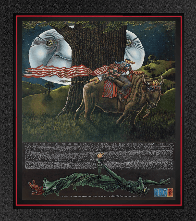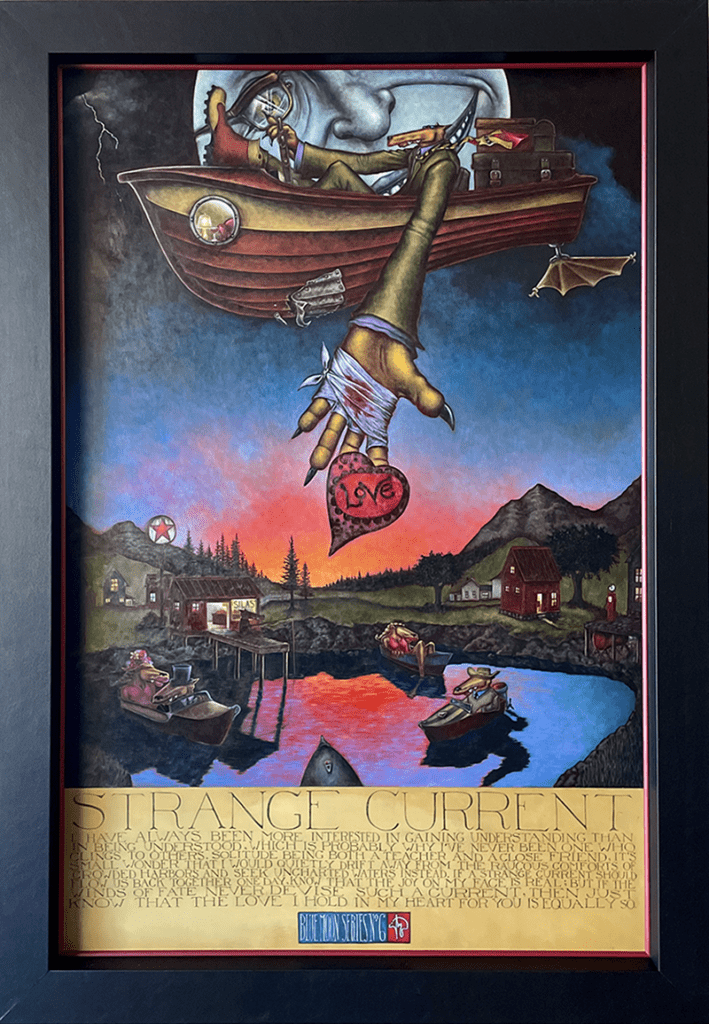 Coyote Series Artis Markus Pierson and TELLURADO owner Mitch Schwenke throwing up the signature “Viceroy Victory” pose celebrating a beauty of a day while playing Creekside in the northern Maine backyard of Markus Pierson. TELLURADO STUDIO, a cozy refuge in its 3rd year, offers up exclusively the Fine Art of the “Coyote Series”, cool logoed outdoor provisions and excellent Craft Cocktails. A place to hideout, hang your hat and throwback one of our famous Oakwood Smoked “Old Fashioned” while taking in the tales of reckless footloose souls, crazy romance and philosophy by Coyote Series Artist Markus Pierson.